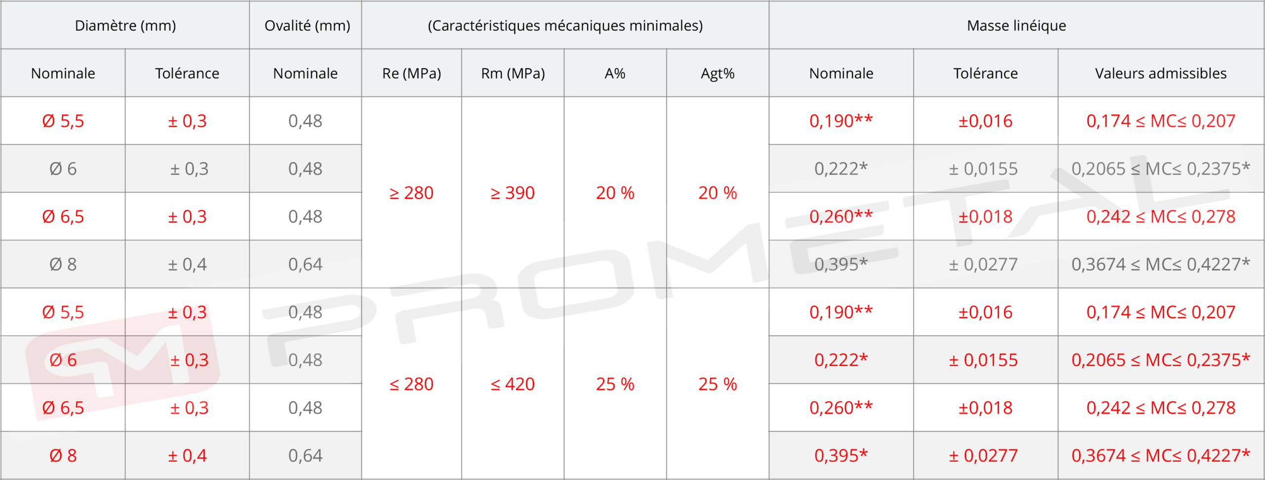 Qualités d'acier : SAE 1006 / SAE 1008.