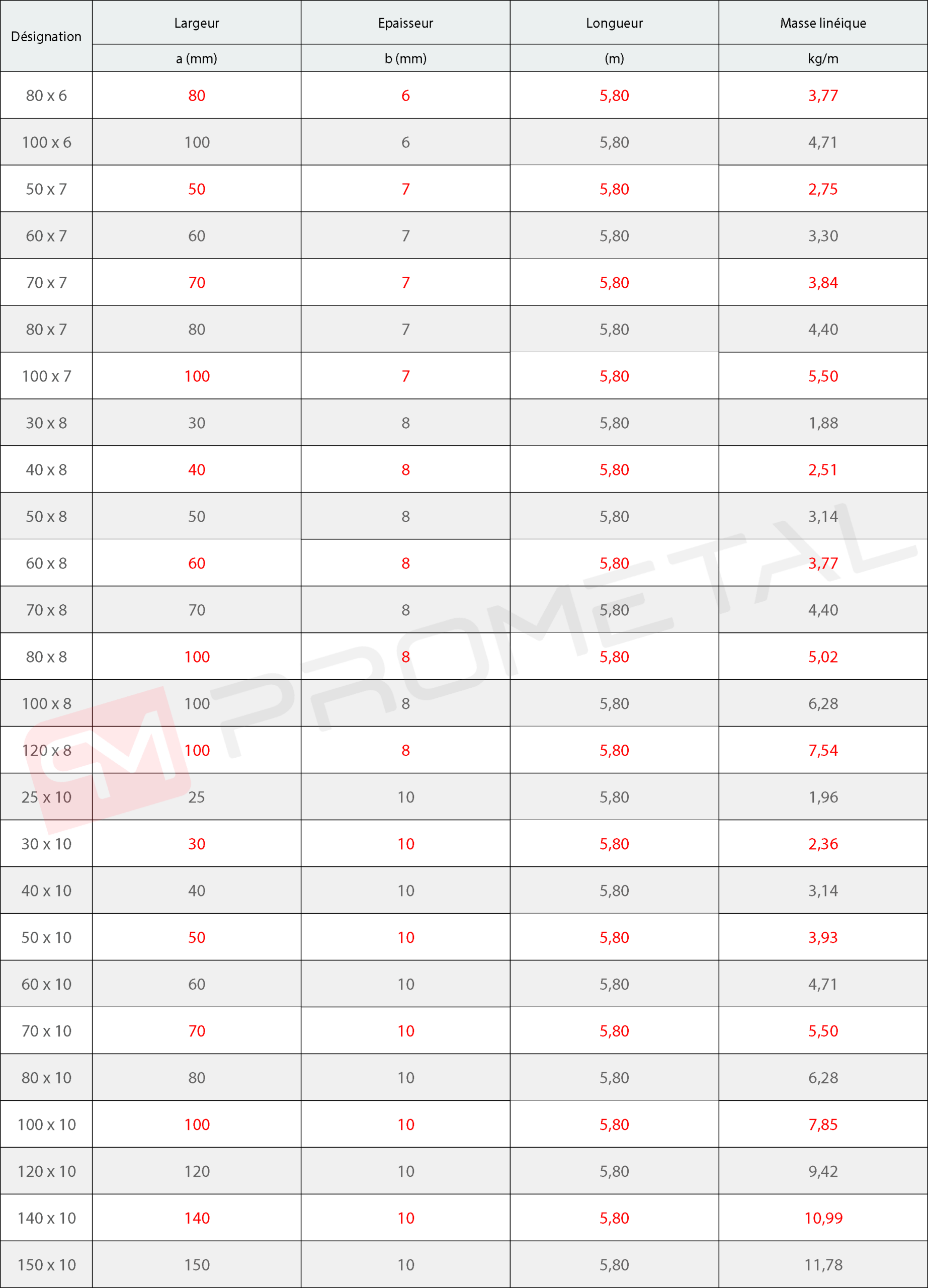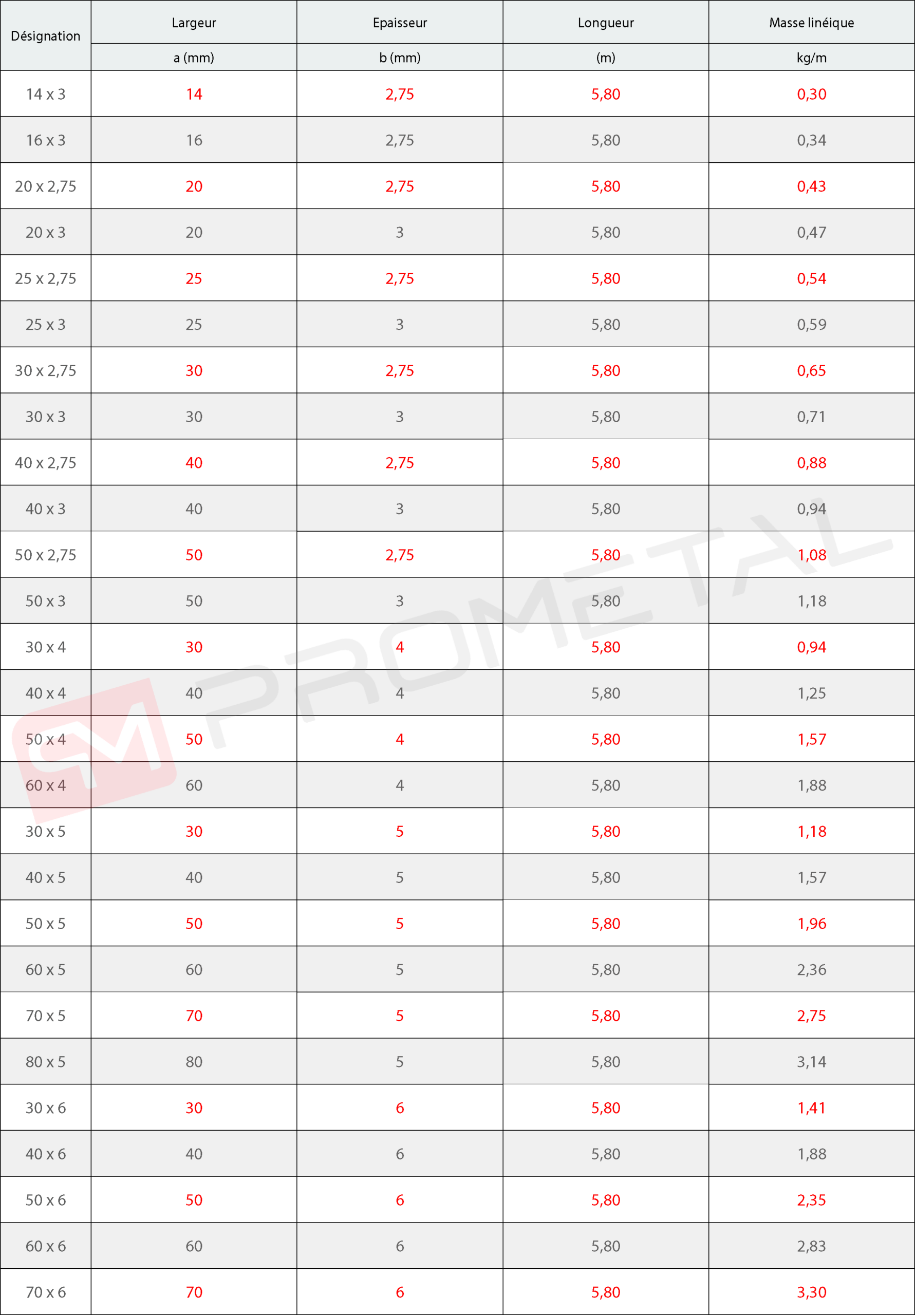 Fer carré laminé à chaud Désignation : Width x Thickness. Qualités d'acier : S235 JR et S275 JR (EN 10025).