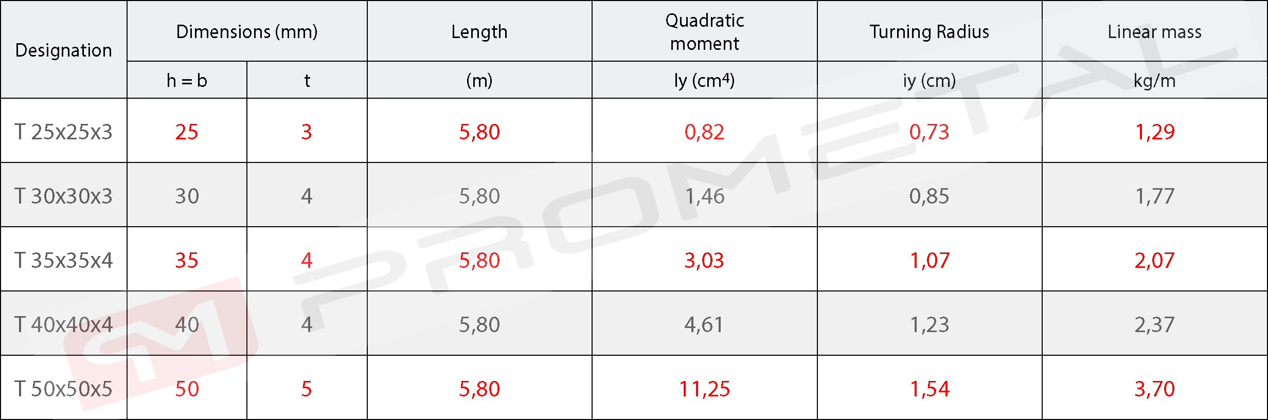 Designation: T + Height of the core X Width of the sole X Thickness.