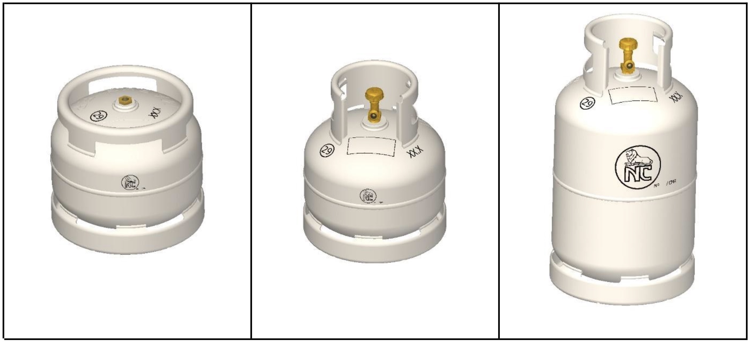 They comply with colour codes specific to distributors and are designed for a capacity of 6 and 12.5 kg of butane.